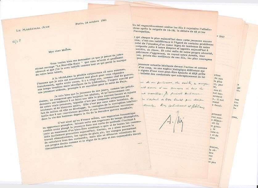 JUIN (Alphonse). 1888-1967. Maréchal de France. 5 L.T.S. dont avec souscr