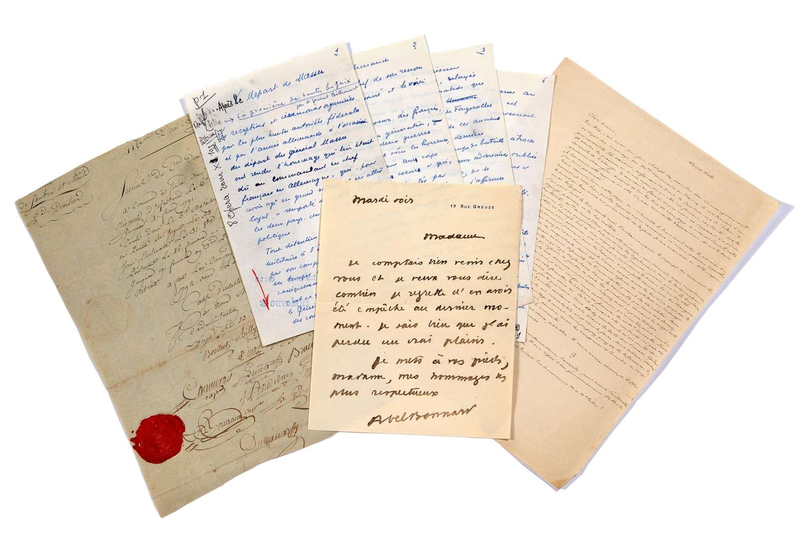 Ensemble de documents historiques d'environ 20 pièces.