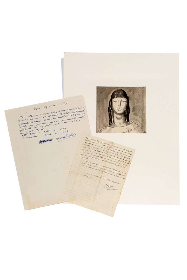 On y joint Jean DUPAS « Portrait de face ». [1930]. Dessin sur papier à l'encre de Chine, monogrammé en bas à droite. 15 x 16 cm. (1 pièce).