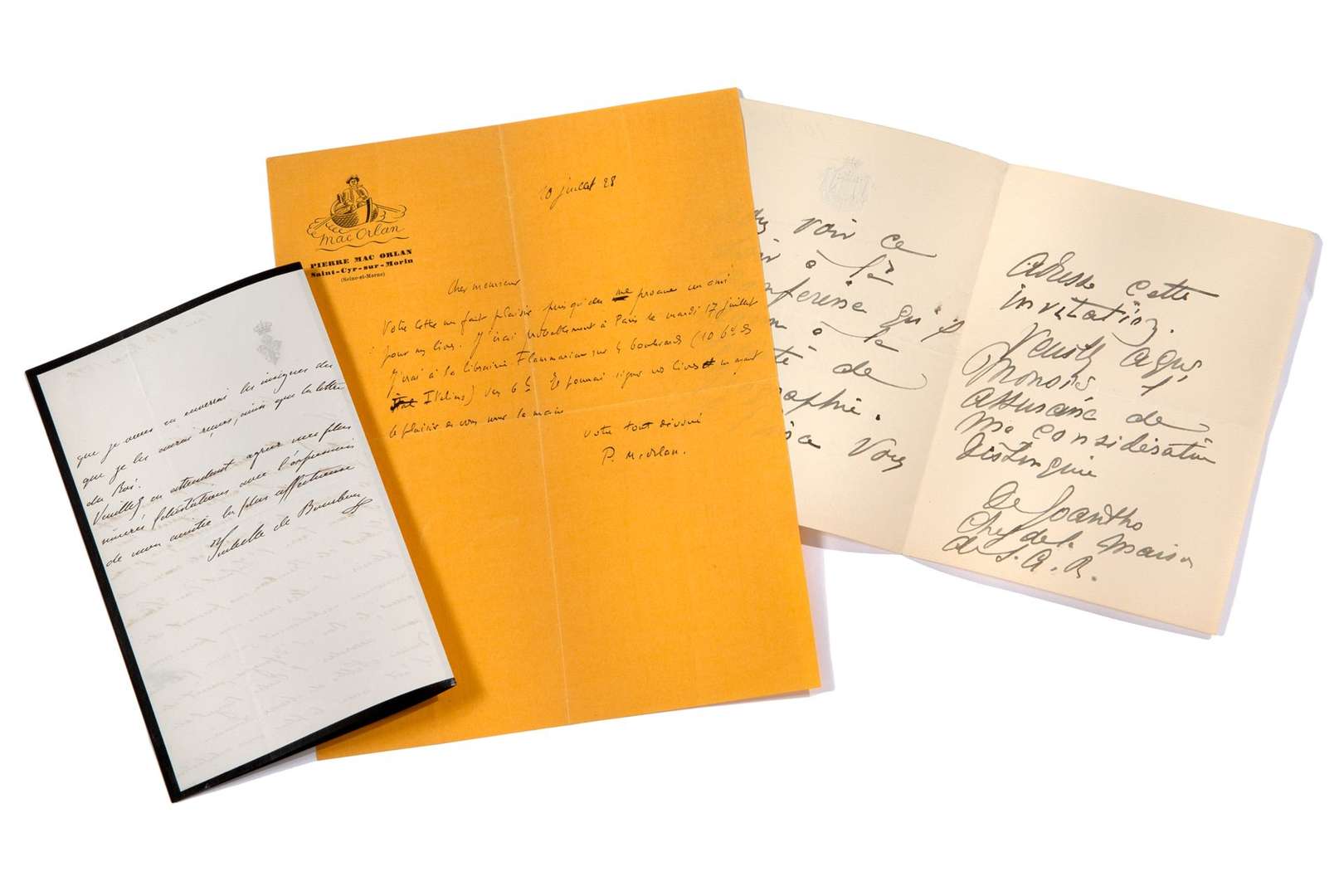 ENSEMBLE de 18 pièces : Charles Marie LECONTE DE LISLE (1 pièce), Casimir DELAVIGNE (1 pièce), Jules MASSENET (3 pièces), François AUGIERAS (1 pièce), Anatole France (5 pièces), Reine Isabelle II de BOURBON (1 pièce), DUC DE MONTEPENSIER (1 pièce), César Antonovitch CUI (1 pièce), Pierre MAC ORLAN (1 pièce), Philippe HERIAT (1 pièce), Duc DE CHOISEUL (1 pièce) et Félix Antoine APPERT (1 pièce).