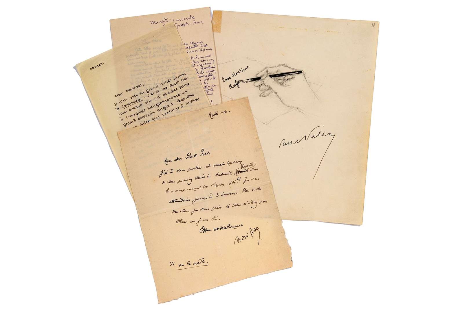 Paul VALERY (1 pièce), André GIDE (4 pièces), Nicolas-Charles OUDINOT (2 pièces), Alexandre DUMAS FILS (4 pièces).