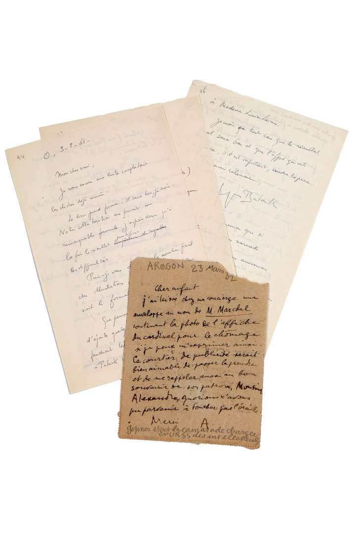 Louis ARAGON (1 pièce), Jean-Baptiste DE NOMPERE DE CHAMPAGNY, Duc de CADORE (1 pièce), Georges BATAILLE (3 pièces) et Maurice DE BECQUE (5 pièces).