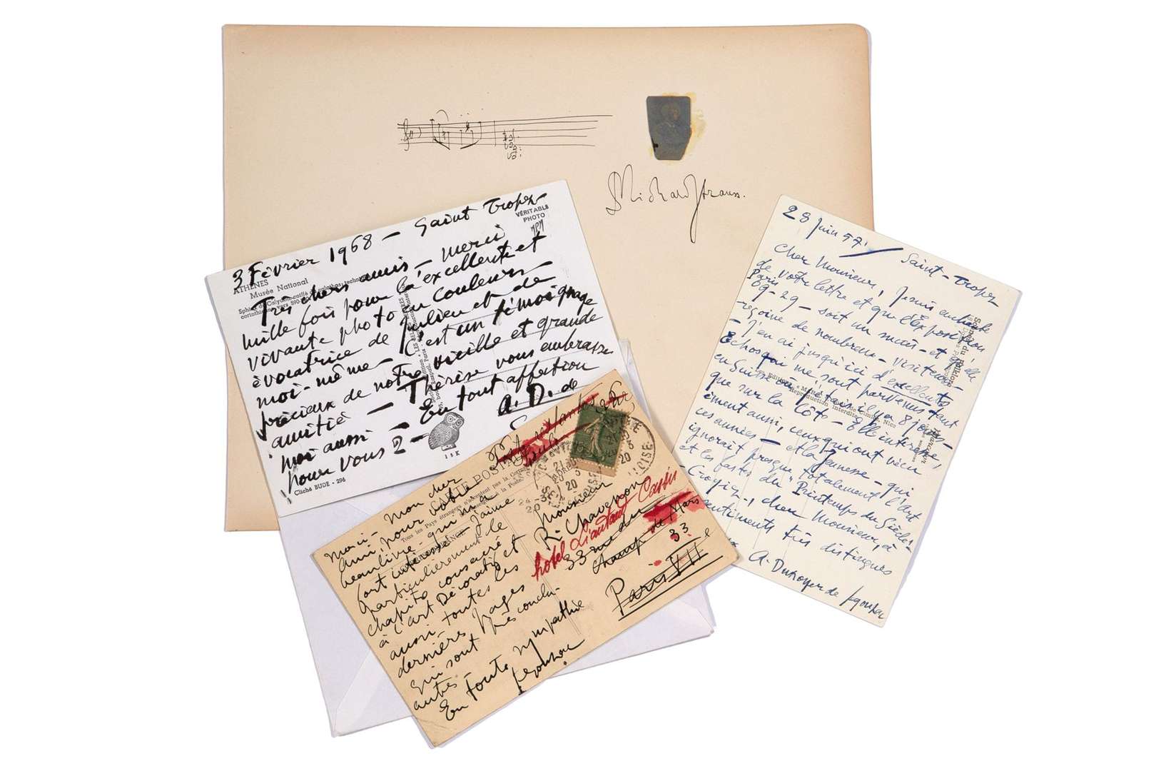 Richard STRAUSS (1 pièce), Impératrice de France MARIE LOUISE (1 pièce), DUNOYER DE SEGONZAC (7 pièces), André GIDE (1 pièce), Henri MEILHAC (1 pièce), Eugène LABICHE (1 pièce) et Maurice LEBLANC (1 pièce).