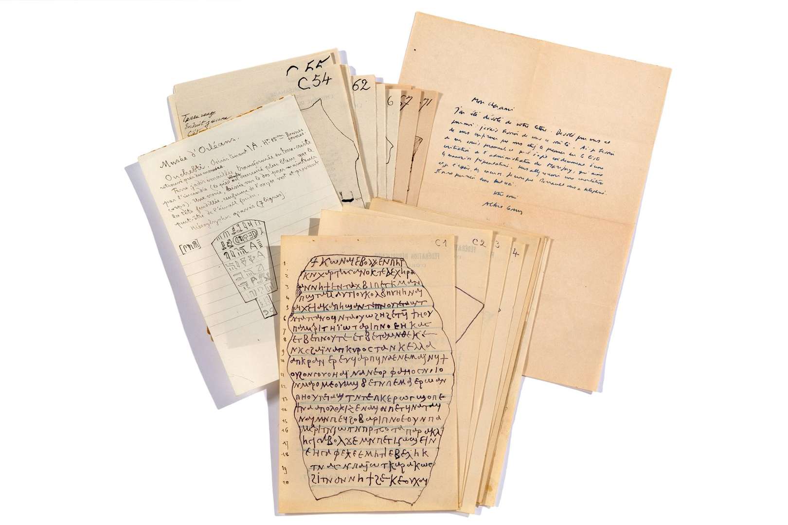 Charles-Antoine COYPEL "Le Villageois Désabusé" (1 pièce), Auguste-Théophile BAILLET manuscrit autographe (1 pièce), Pierre-Jean de BERANGER (2 pièces), Yvonne DE GAULLE (1 pièce), Jean GALTIER-BOISSIERE (1 pièce), Albert CAMUS (1 pièce), Louis-Joseph de Bourbon, prince de CONDE (1 pièce) et 'Alphonse de LAMARTINE (1 pièce).
