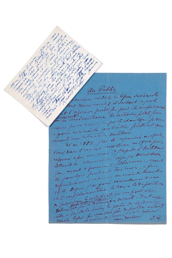 Sacha GUITRY (2 pièces), Pierre LOUYS (1 pièce), Raoul DUFY (1 pièce) et Roger MARTIN DU GARD (2 pièces).
