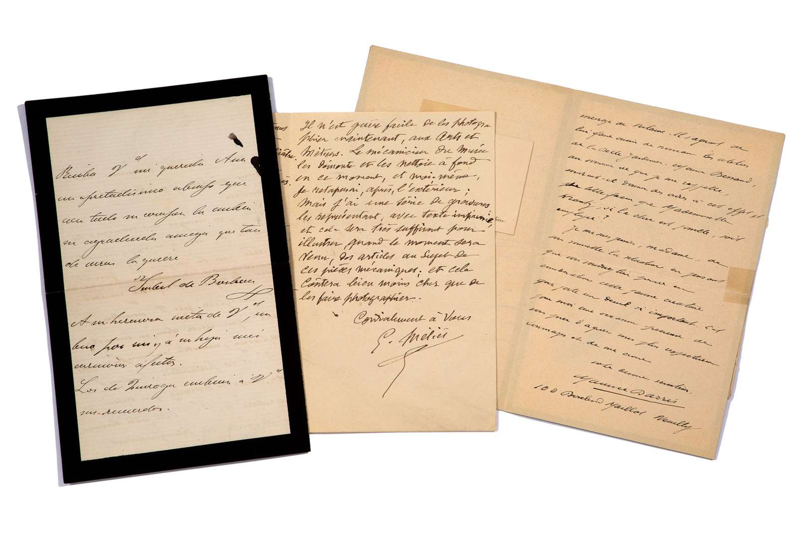 Georges MELIES (1 pièce), Gabriel ZENDEL (8 pièces), René FLORIOT (1 pièce), Marcel MARTINET (1 pièce), Robert LEBAUDY (1 pièce), Francisque SARCEY (1 pièce), Gérard de RAYNEVAL (10 pièces), Maurice BARRES (1 pièce), Reine Isabel II d'Espagne (1 pièce), ean-Baptiste NOMPERE de CHAMPAGNY (3 pièces), Comtesse de RENEVILLE (1 pièce), Charles-Louis de SAULCES de FREYCINET (5 pièces), P. de La BOURDONNAYE (1 pièce), [COQUELIN aîné Constant] (35 pièces) et Henri LEBASQUE (1 pièce).