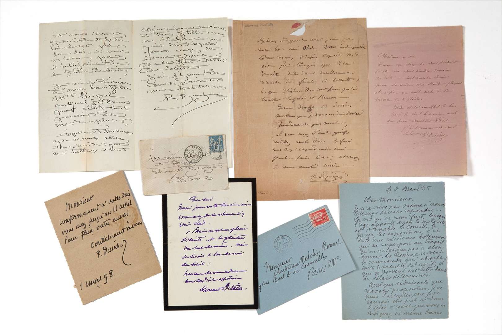 L.A.S. "R. Bonheur", Nice, 15 mars 1882, aux marchands de tableaux ARNOLD et TRIPP. 2 pages et demie in-8 (pliures, tâches brunes), enveloppe d'origine jointe.