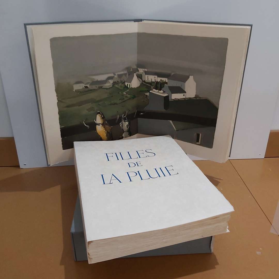 Tirage à 310 exemplaires, celui-ci un des 50 sur Japon super nacré (n° 84) enrichis d'une suite en couleurs sur Arches sous chemise de toile bleu ciel, troisième grand papier.