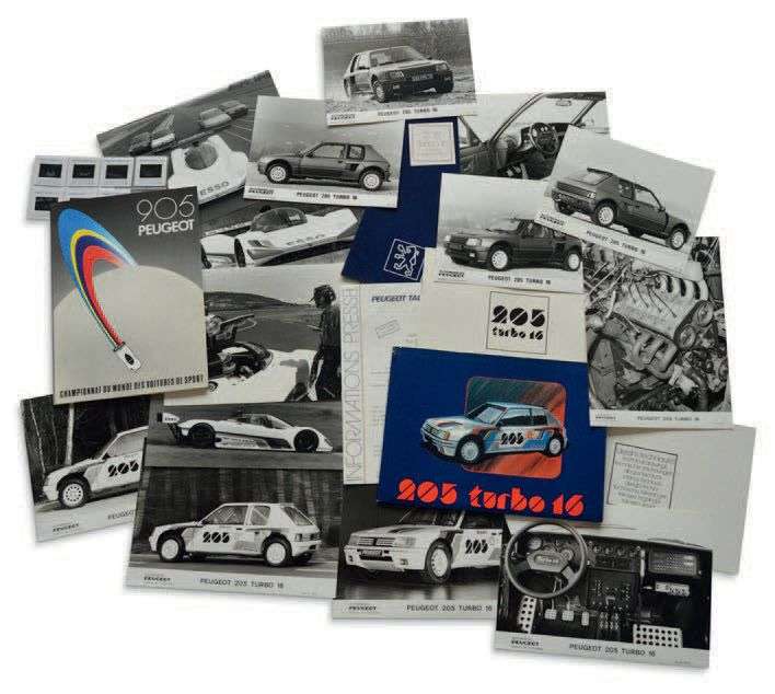 Lot de 3 dossiers de presse présentant les Peugeot 905 et 205 Turbo 16