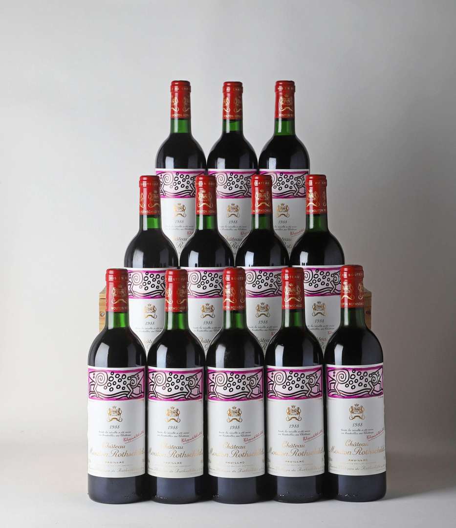 12 B CHÂTEAU MOUTON ROTHSCHILD (Caisse Bois d'origine) (3 B.G| 7 T.L.B.+| 2 e.a. et 1 e.t.a.) - 1988 - GCC1 Pauillac