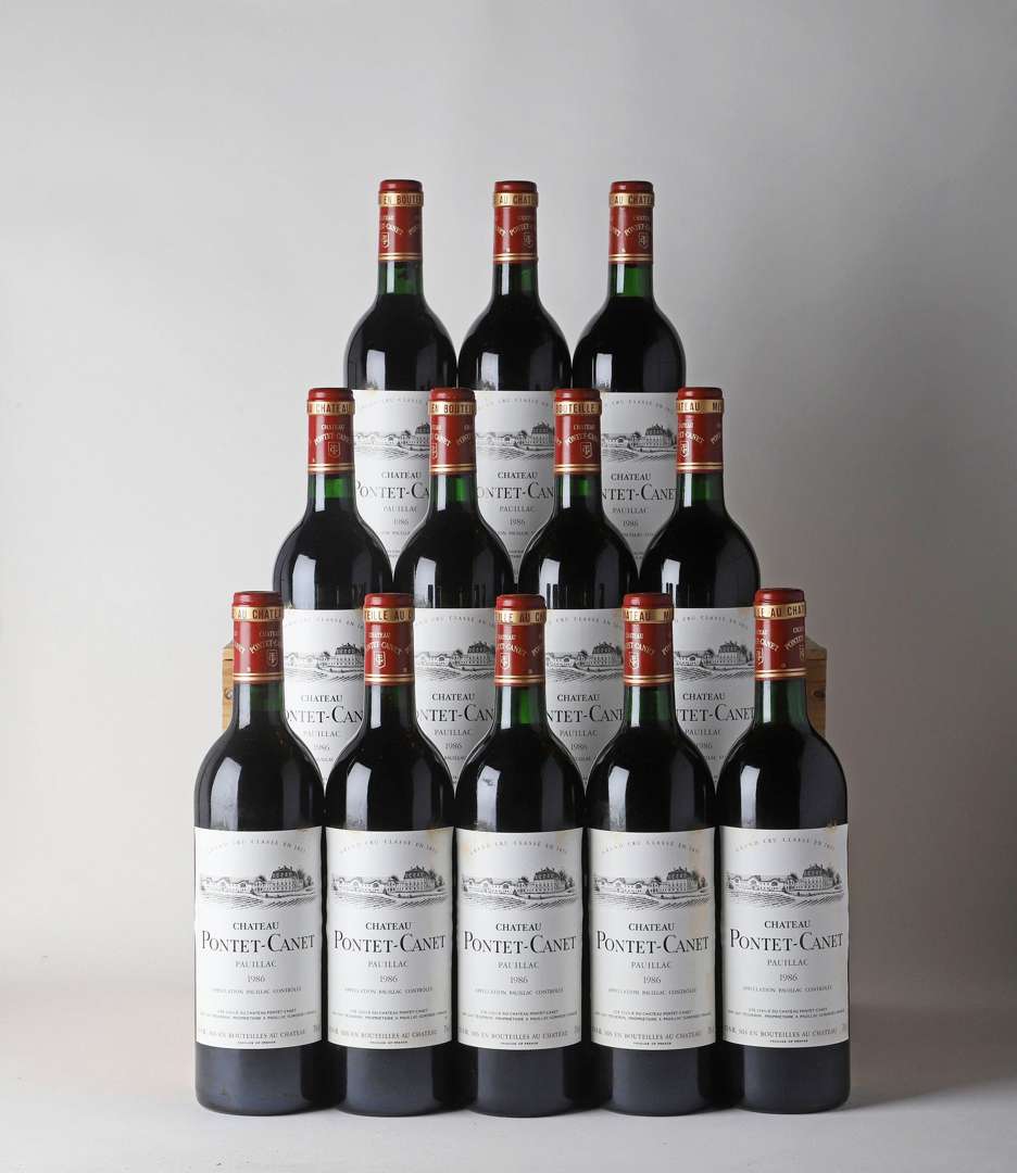 12 B CHÂTEAU PONTET-CANET (Caisse Bois d'origine) (5 B.G.) - 1986 - GCC5 Pauillac