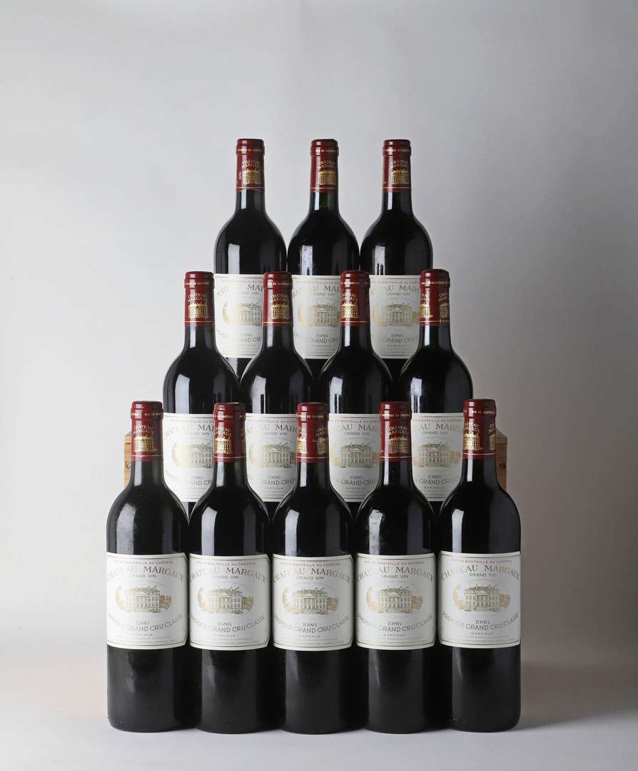12 B CHÂTEAU MARGAUX (Caisse Bois d'origine) (1 B.G| 1 bas de capsule plissée| 1 c.l.a. bas de jupe sinon parfaites) - 1986 - GCC1 Margaux