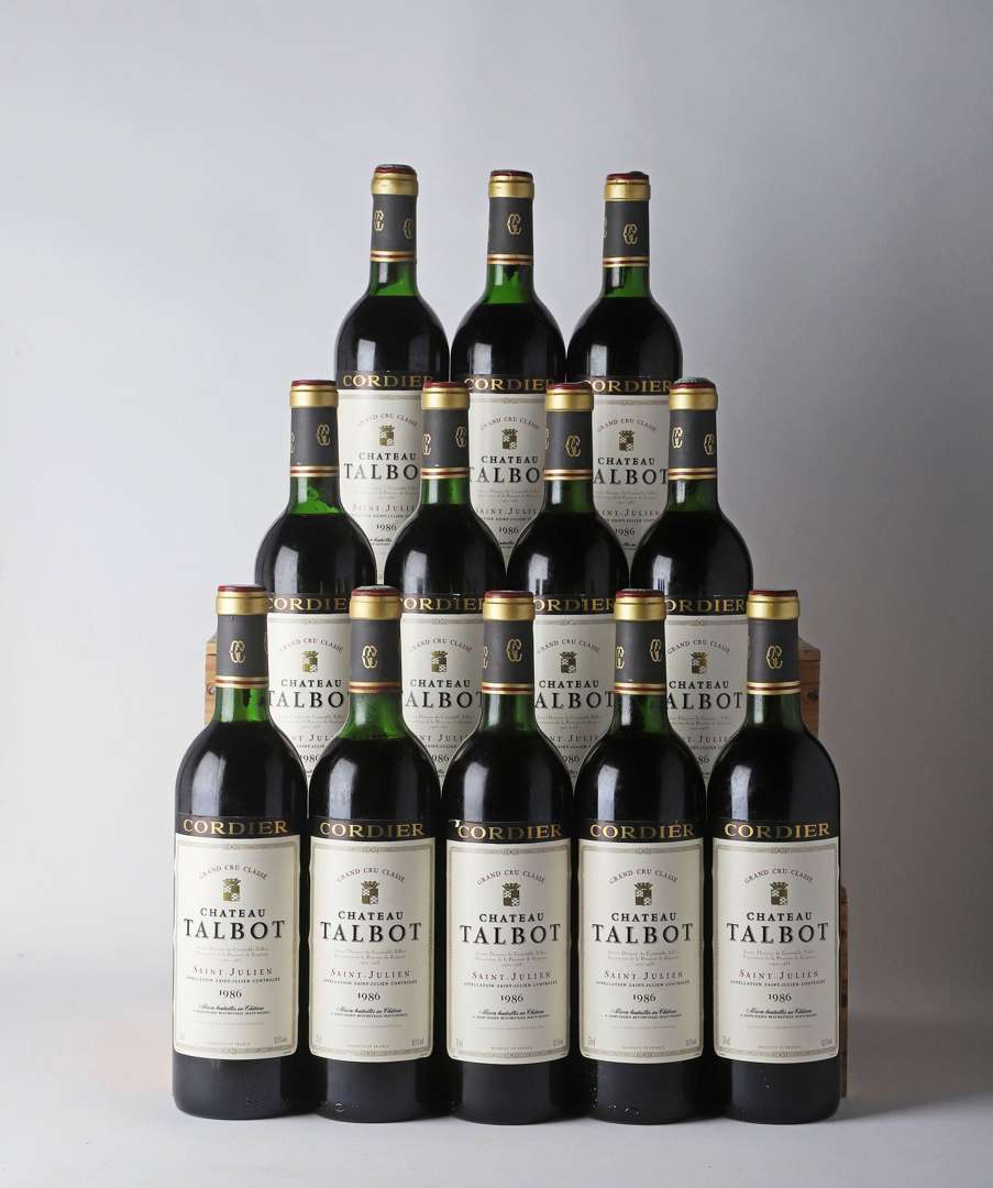 12 B CHÂTEAU TALBOT (Caisse Bois d'origine) (1 B.G| 5 T.L.B.+| 5 T.L.B. et 1 H.E.+| 2 capsules gonflées) - 1986 - GCC4 Saint-Julien