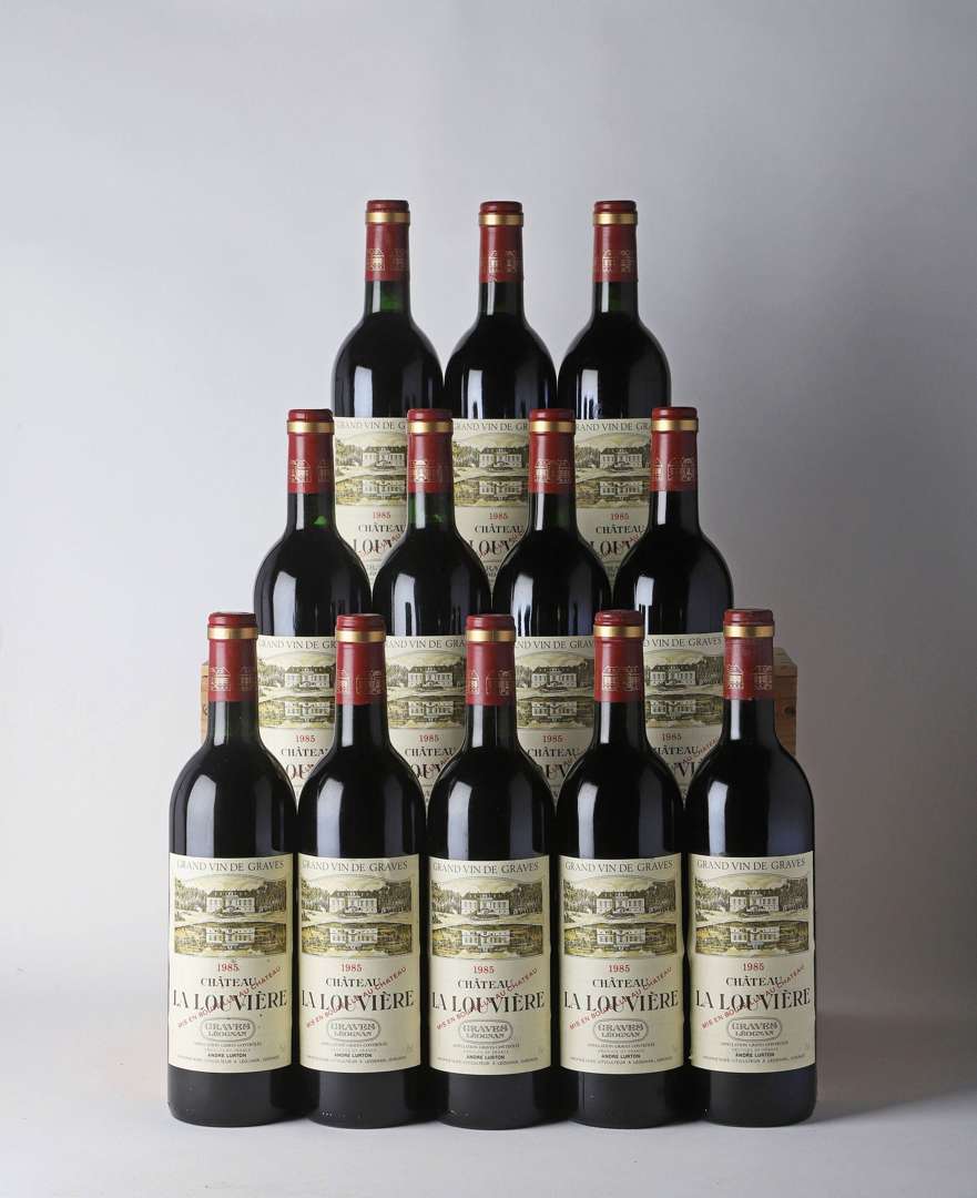 12 B CHÂTEAU LA LOUVIÈRE Rouge (Caisse Bois d'origine) (4 B.G| 2 c.s. légères) - 1985 - Pessac-Léognan