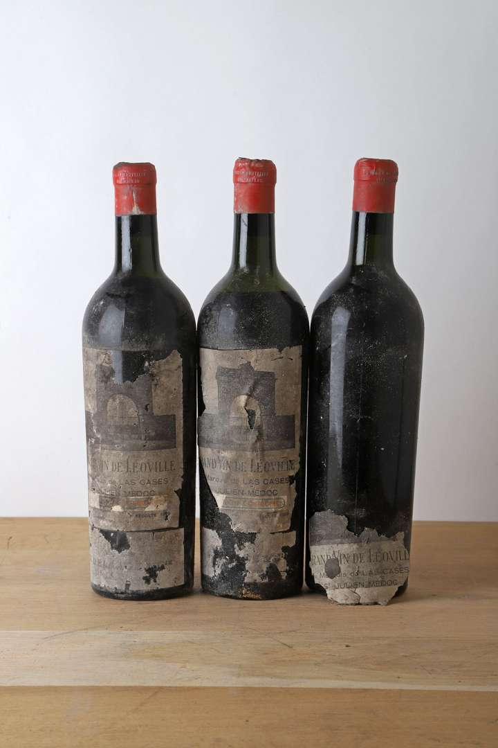3 B CHÂTEAU LÉOVILLE LAS CASES (1 B.G| 1 T.L.B.-| 1 H.E| 2 e.q.i. 1 s.e. avec millésime illisible| millésimes apparent sur les bouchons| 2 c.s| 1 c.a.) - 1929 - GCC2 Saint-Julien