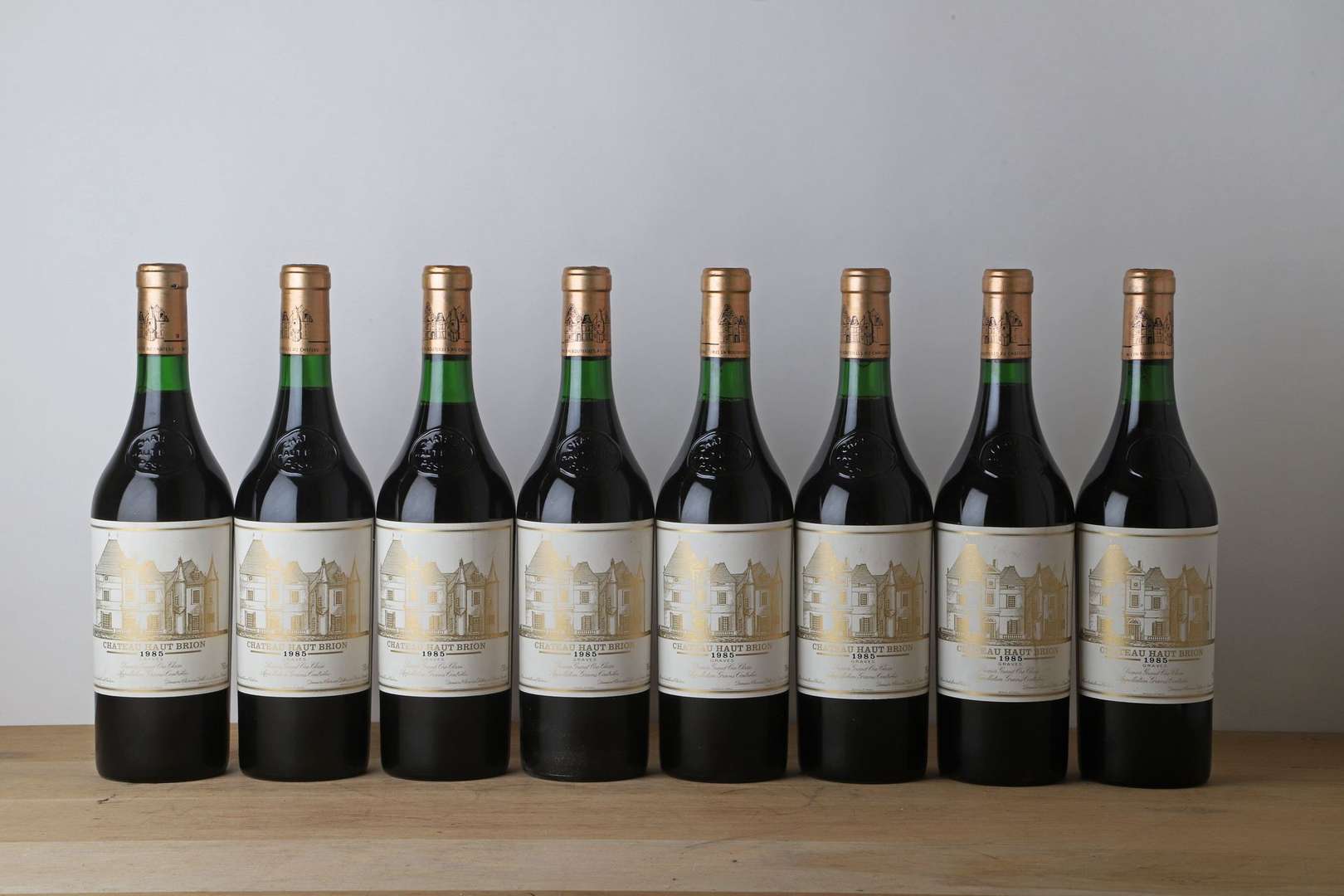 8 B CHÂTEAU HAUT-BRION (Caisse Bois d'origine de 12 remise à l'acquéreur) (1 à 2,5 cm| e.l.s| 1 accroc côté capsule| 1 c.a. guillotines bas de jupe) - 1985 - GCC1 Graves