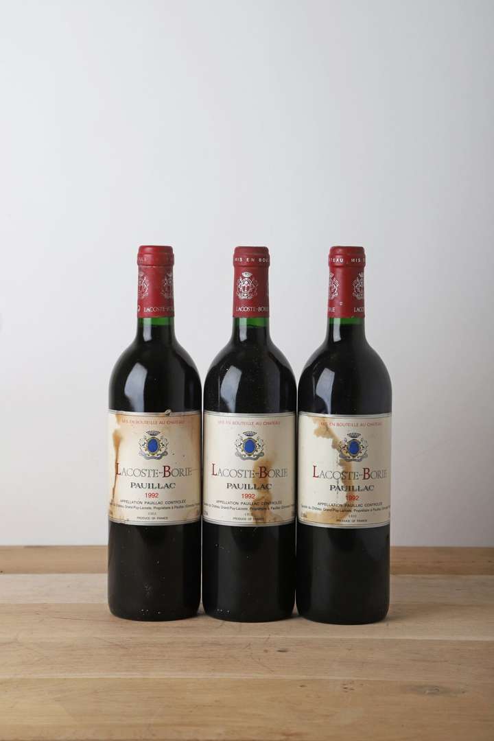 3 B LACOSTE-BORIE (e.t.h. dont 1 e.l.a.) - 1992 - Pauillac