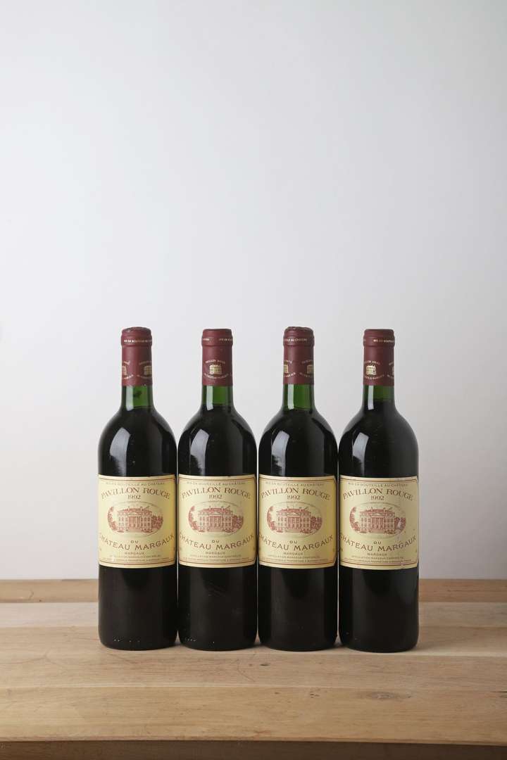 4 B PAVILLON ROUGE DU CHÂTEAU MARGAUX (1 B.G| 1 T.L.B.+| 2 e.l.a| 1 e.a| 1 e.t.a| 1 capsule légèrement bosselée) - 1992 - Margaux