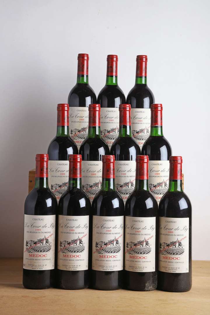 12 B CHÂTEAU LA TOUR DE BY (Caisse Bois d'origine) (T.L.B. ou mieux| 1 c.a.) - 1989 - Médoc