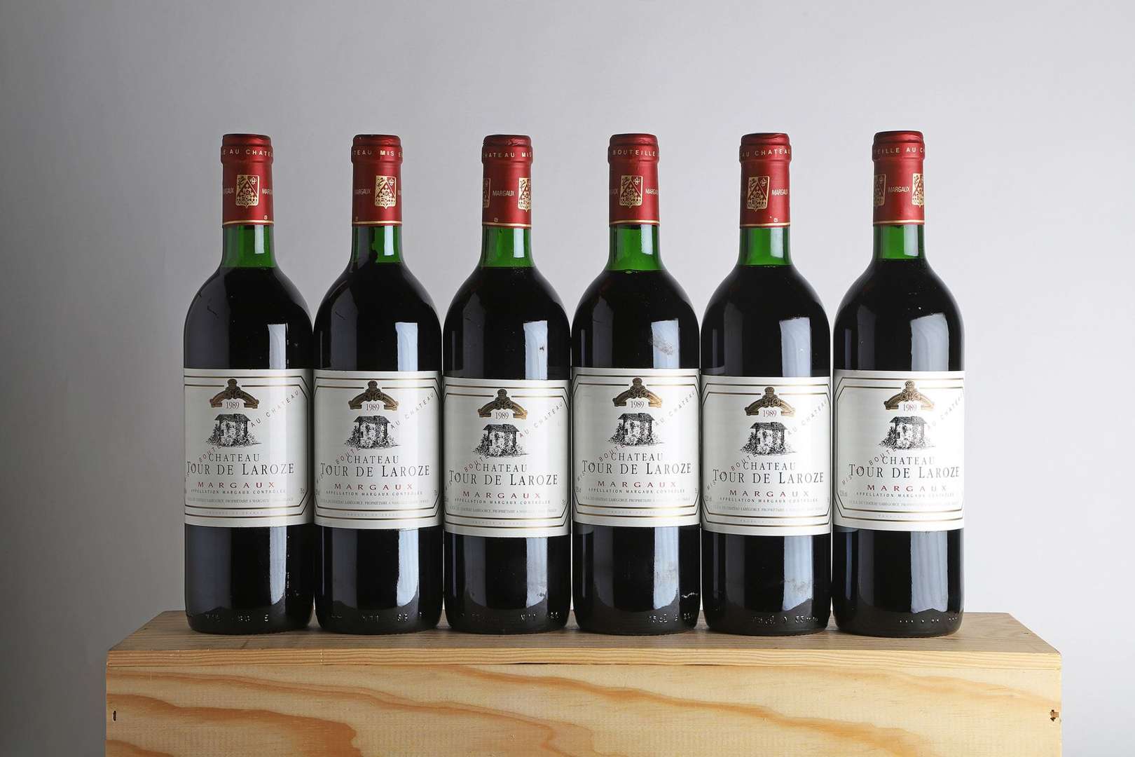6 B CHÂTEAU TOUR DE LAROZE (Caisse Bois d'origine) (1 B.G| 3 T.L.B.+ et 2 T.L.B.) - 1989 - Margaux