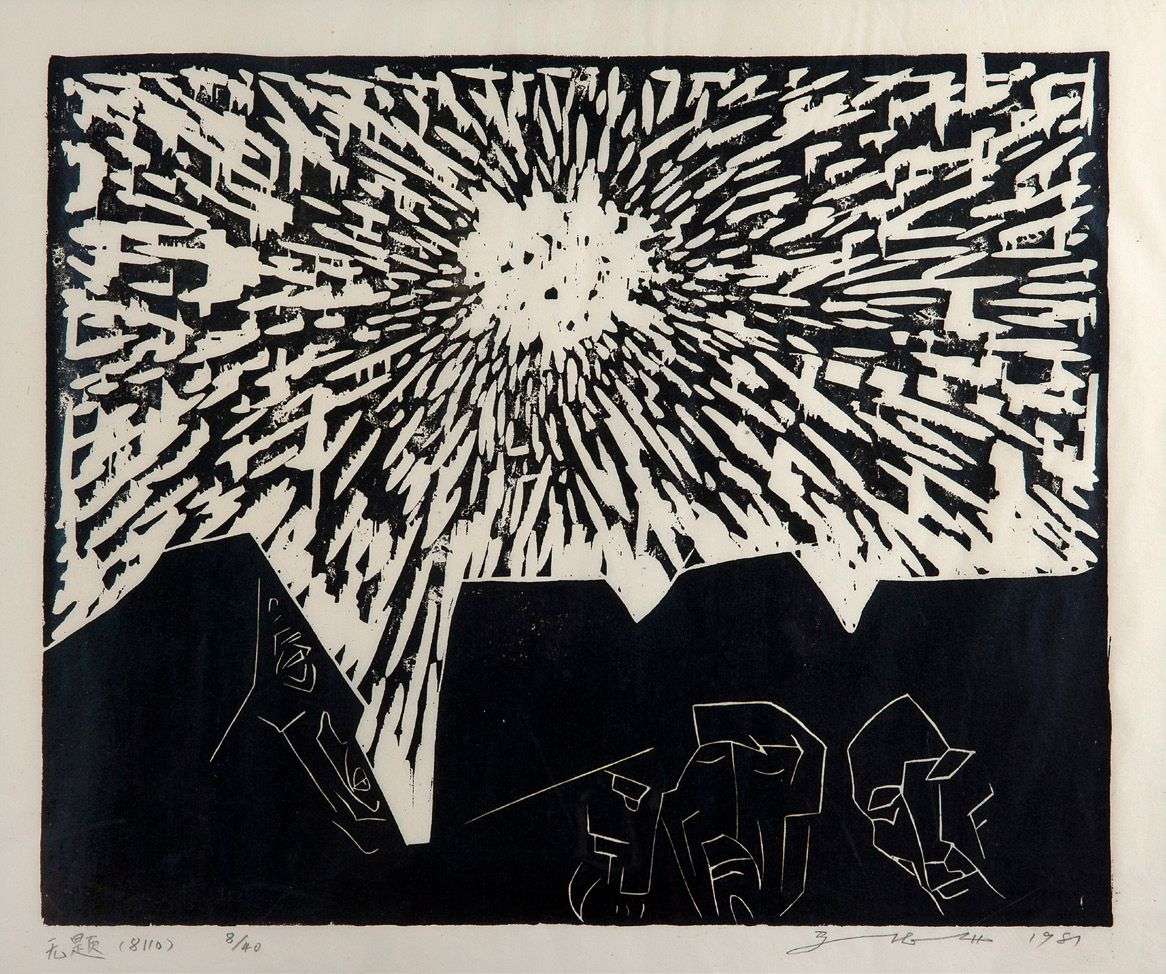 Linogravure sur papier de soie, signée et datée en bas à droite, numérotée 8/40 et portant la mention « Sans titre (8110)» en bas à gauche
