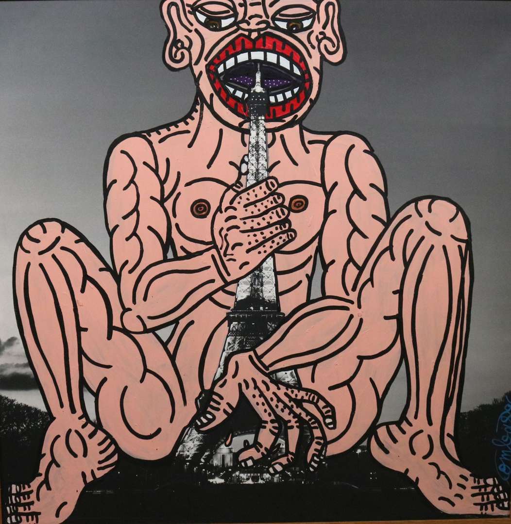 OEuvre croisée Combas/Turpault, technique mixte sur photo