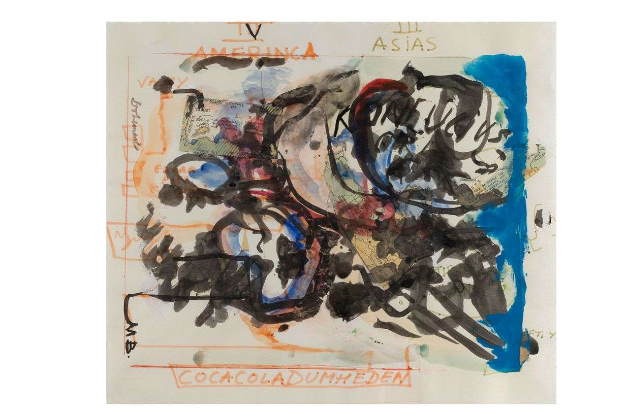 Collage et technique mixte sur papier, signée en bas à droite et monogrammée à gauche