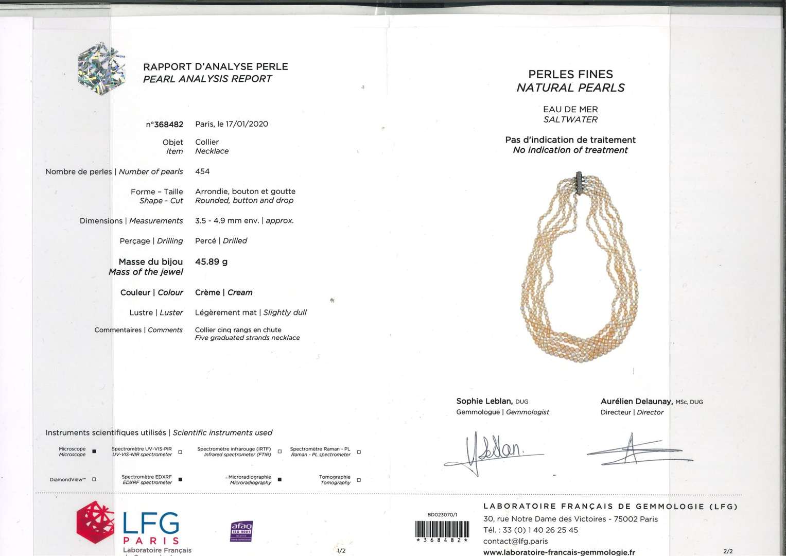 A natural pearl necklace, report