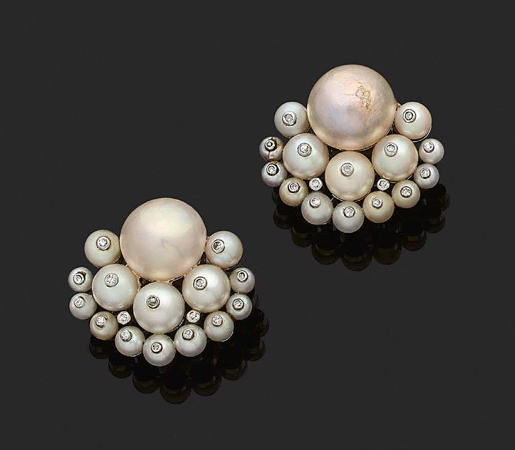 Diamond, pearl and gold clips by Suzanne Belperron, stamped, certificate