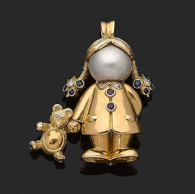 BROCHE-PENDENTIF « FILLETTE ET SON OURSON »