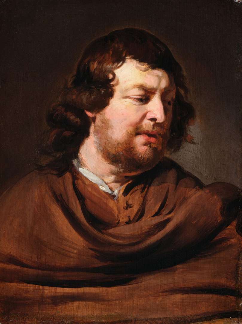 Rembrandt van Rijn (1606 - 1669) arrive et s'impose comme l'un des plus grands portraitistes de son époque. Il est alors possible que Keyser soit parti quelque temps en Angleterre où sa présence serait attestée par son beau-frère, Nicholas Stone. Fermement éloigné de la grandiloquence d'un portrait d'apparat, l'artiste fait le choix de la simplicité en présentant ici son modèle dans un cadrage intimiste, de format modeste. Pratique courante, cela pourrait suggérer qu'il s'agit là du portrait d'un ami ou d'un confrère. Nous savons par exemple qu'en 1651, il réalise le portrait de Jacob Backer, et dont la gravure d'après l'oeuvre peinte participa de diffuser le nom de son peintre en même temps que celui de Backer. Dans sa composition, le peintre fait le choix de l'épure. Présentant son modèle sur un fond neutre aux teintes terreuses, le buste de l'homme apparaît, vêtu d'une chemise blanche et d'un gilet que recouvre un épais manteau. Des camaïeux de bruns émergent les chairs lumineuses, donnant un véritable éclat au visage partagé entre lumière et obscurité due à la position de trois-quarts. Cette posture de la tête, légèrement inclinée vers le sol, dynamise la figure et confère du mouvement, de la profondeur à l'ensemble dans un espace pourtant restreint. Le pinceau joue lui aussi de l'intensité de la touche, créant d'une même teinte, des textures aussi diverses que celles des tissus, des chairs, de la chevelure ou de la barbe.