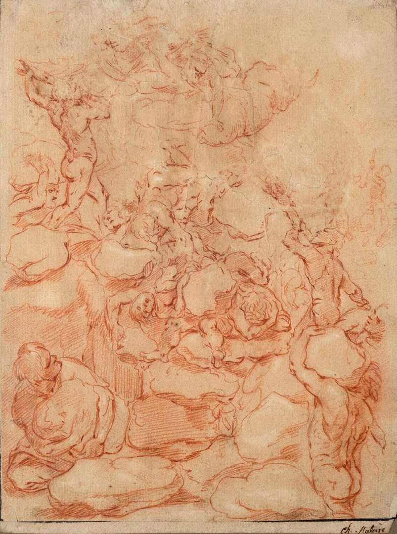 We are grateful to Susanna Caviglia, specialist of the artist, for confirming the attribution of the drawing to Charles-Joseph Natoire and one of his pupil.
