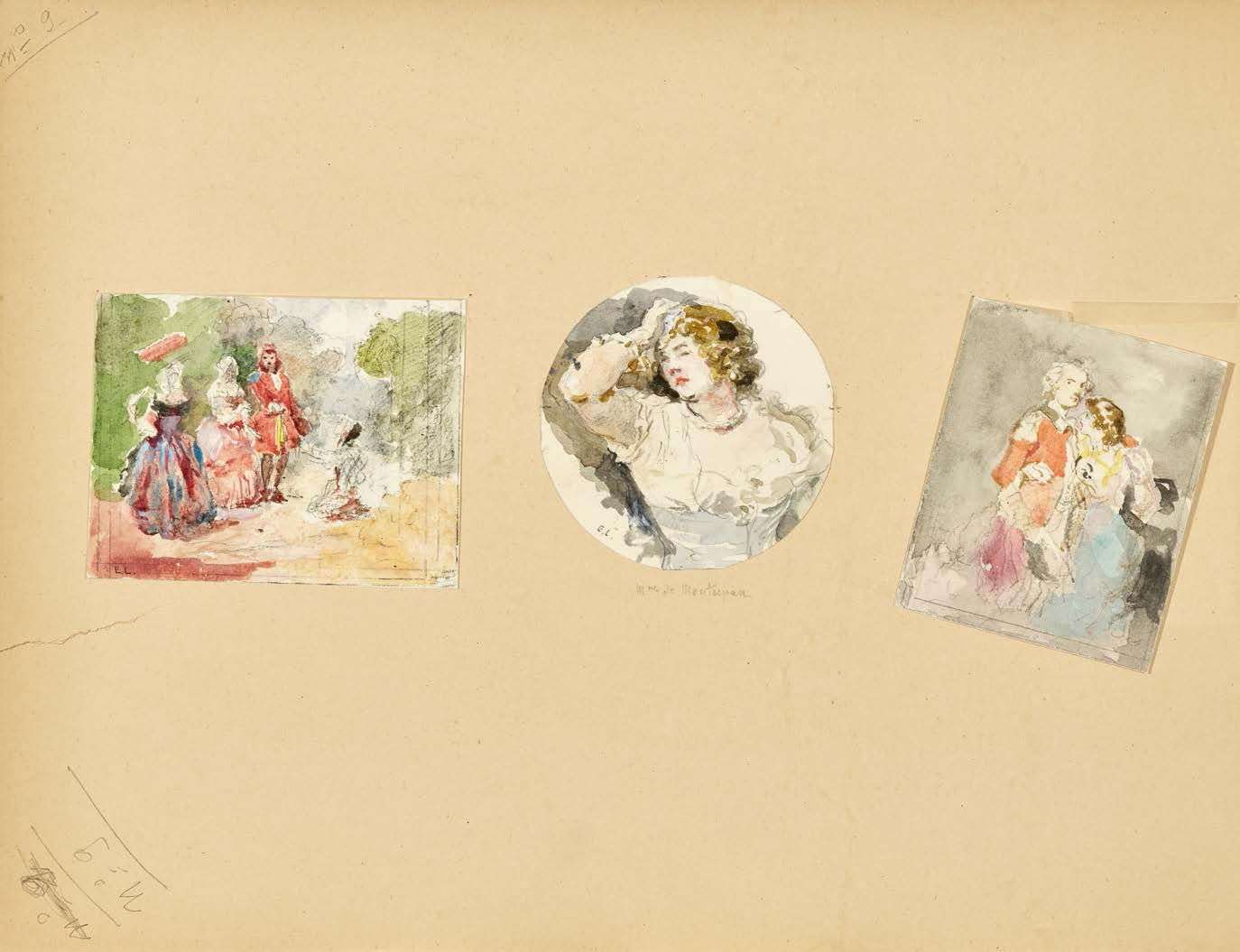 Les 2 et 3 portent un monogramme en bas à gauche E.L. | les 4 et 5 portent une signature en bas vers la droite Eug. Lami