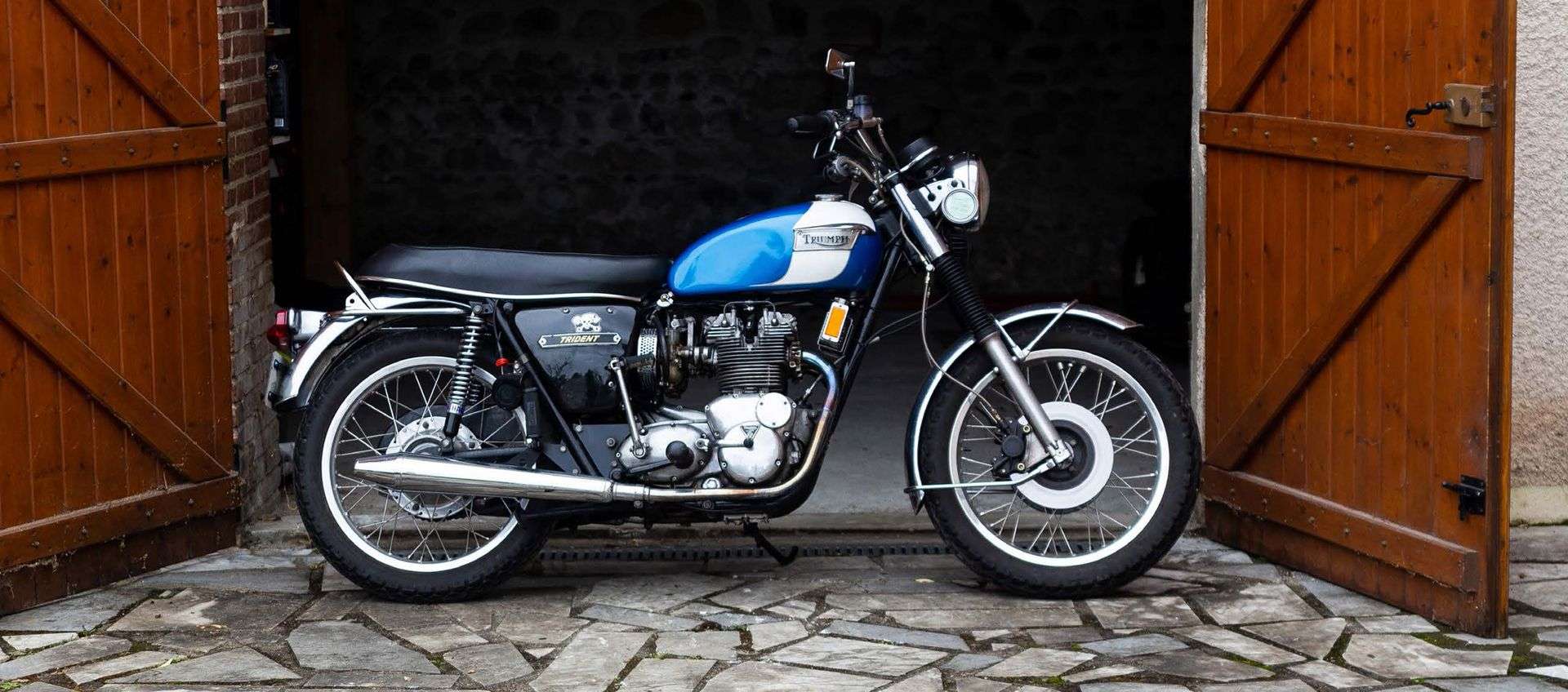 La Triumph Trident est la dernière « vraie » moto classique anglaise. Au début des années 1970, le Twin arrive en bout de développement, et les Américains, gros clients de la vénérable firme britannique, cherchent plus de puissance, et commencent à se tourner vers les japonaises. Il faut réagir ! Le 3-cylindres est à l’étude depuis le début des années 1960, à partir du bicylindre historique. De mémoire de mécano, on n’a jamais vu un moteur avec autant de plans de joints ! Si la première version souffre d’une boîte 4-vitesses un peu datée, la T150V, apparue en 1972, corrige le tir avec une boîte 5-vitesses bienvenue. La T150 est remplacée par la T160 en 1975.