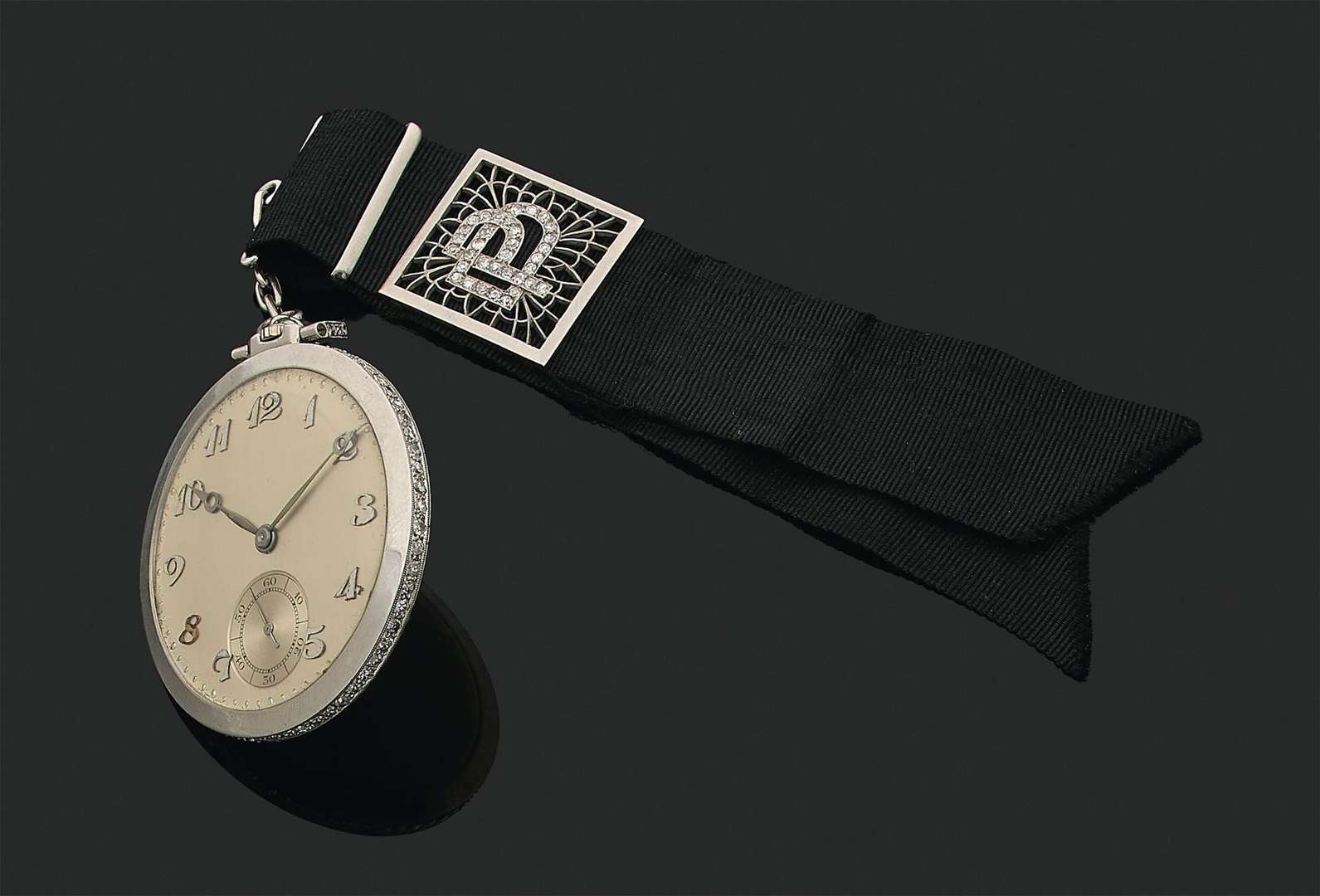Ruban noir aux initiales DP sertis de diamants