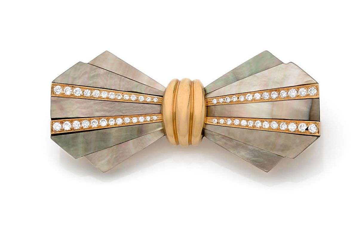 A mother of pearl, diamond and gold brooch, signed Van Cleef & Arpels