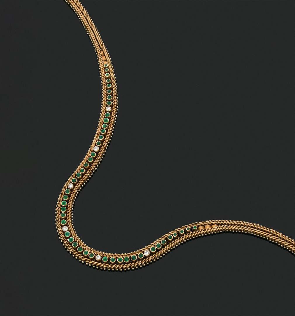 An emerald diamond and gold necklace signed Zolotas