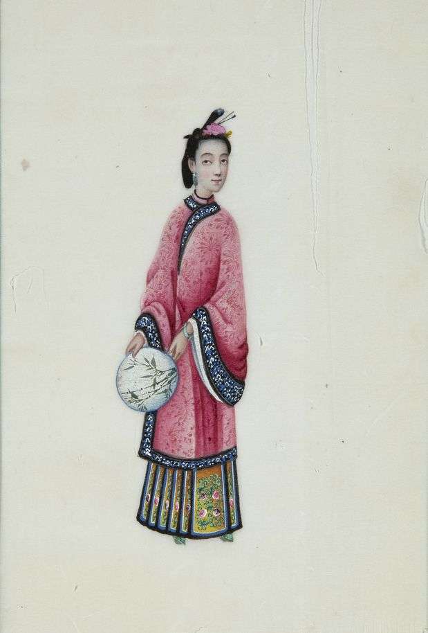 Album de huit peintures de Canton sur papier de riz, représentant des personnages debout légendés à droite. Étiquette « Yoeequa Painter/Old Street N°34 » sur l'une des pages. Dim. peintures 26,8 x 16 cmDim. album 32 x 25 cm (Petites perforations, manques et déchirures en périphérie, taches, couverture en l'état)