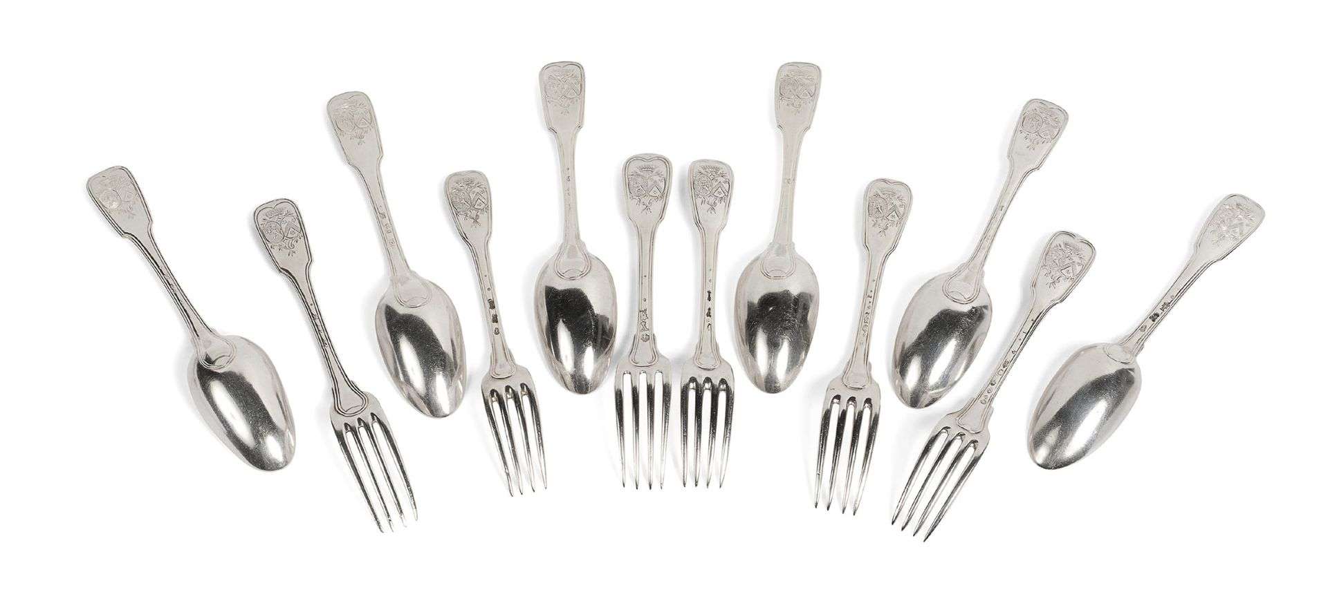 COUVERTS AUX ARMES Six couverts de table (composés de six fourchettes et d