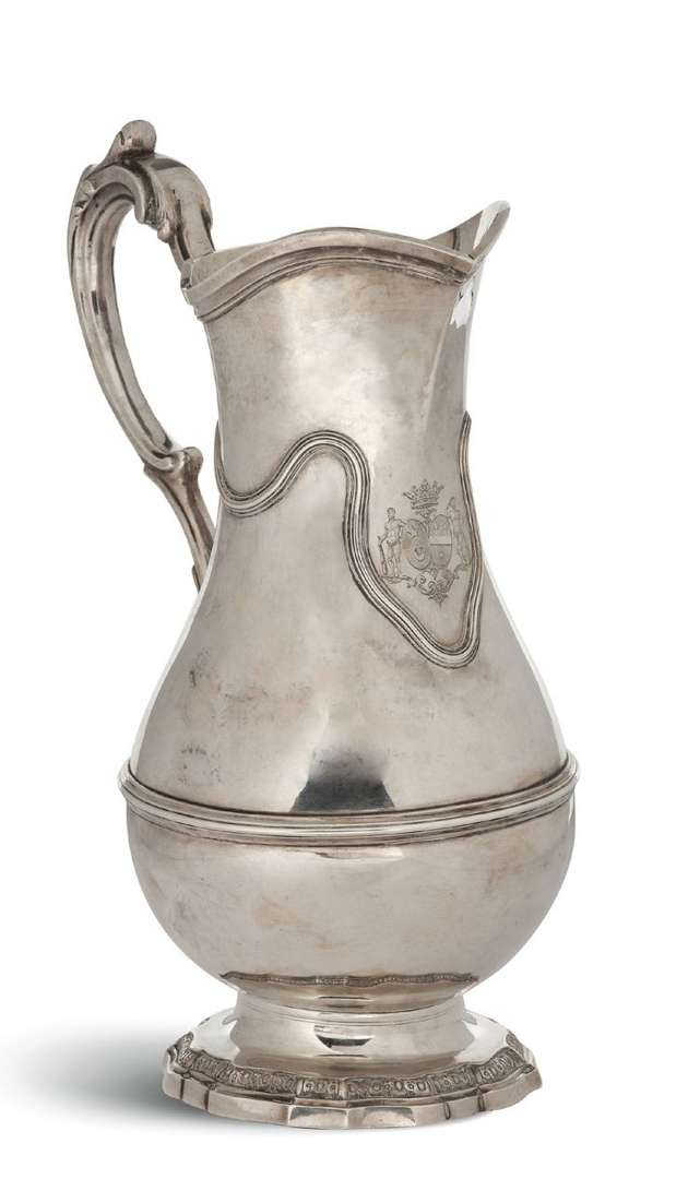 AIGUIÈRE en argent uni reposant sur un piédouche contourné à frise d'oves.