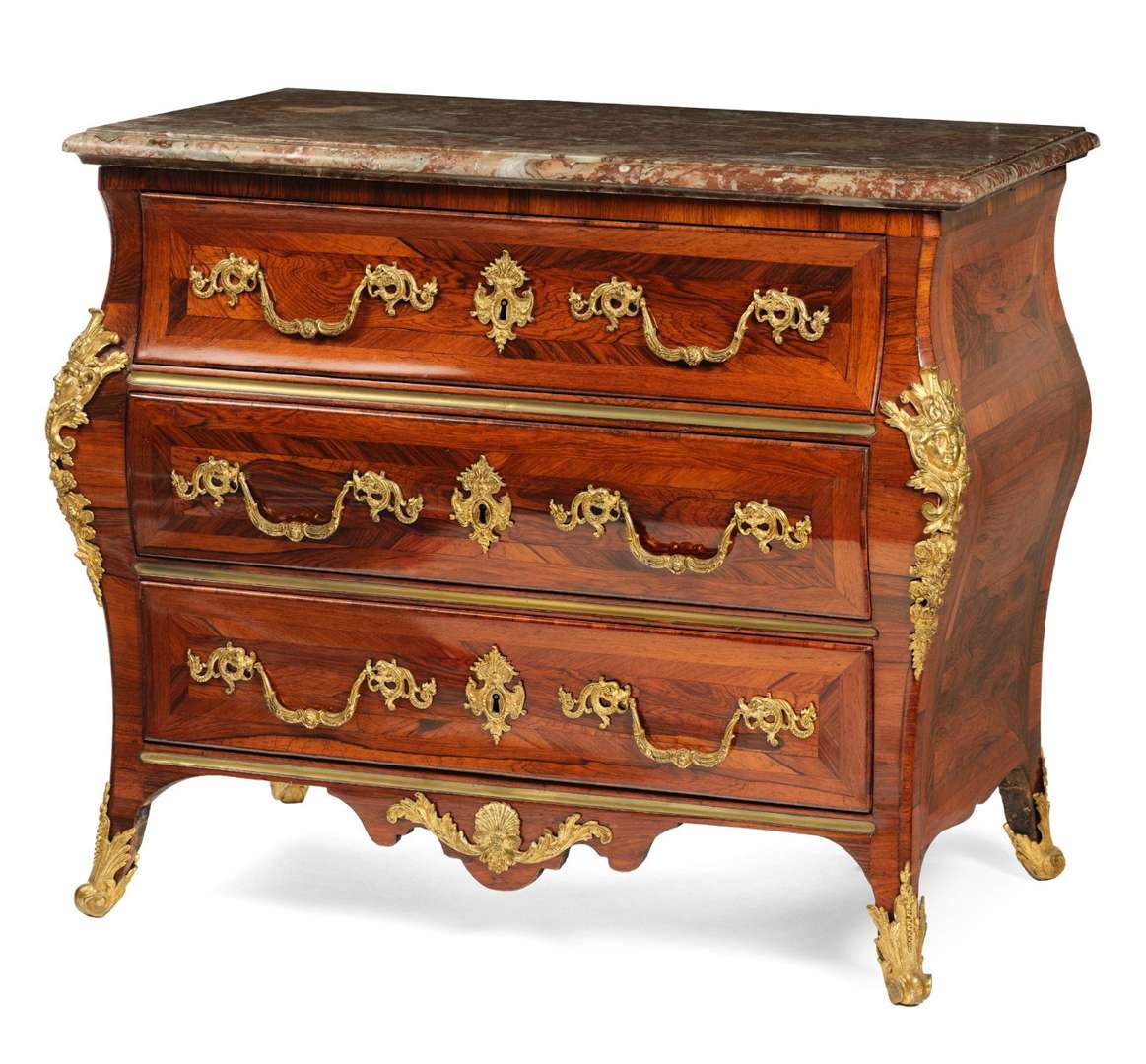 Belle ornementation de bronze doré tels poignées, entrées de serrures, sabot et chutes de bronze doré en mascaron.