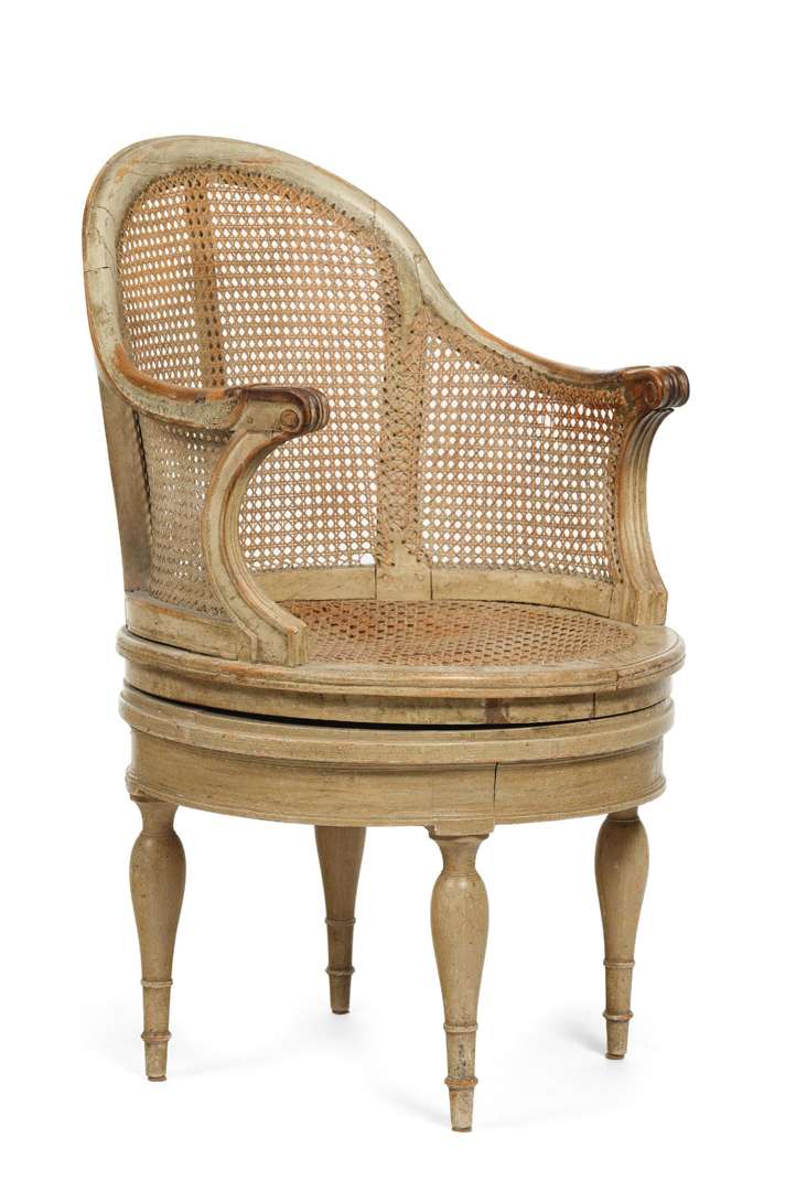 FAUTEUIL DE BUREAU à assise tournante en bois sculpté et originellement laqué crème.