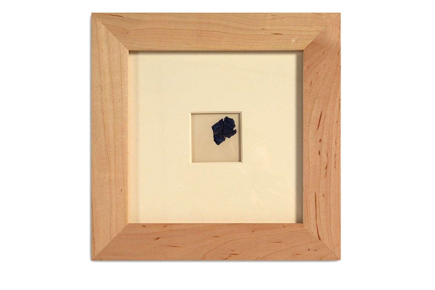 4 fragments de rouleaux de la mer Morte | encre sur cuir| environ 2,5 x 2 cm, 4 x 2 cm, 2,5 x 2 cm, 2 x 0,5 cm | fortement brunis | chaque fragment sous verre et cadre de bois clair.