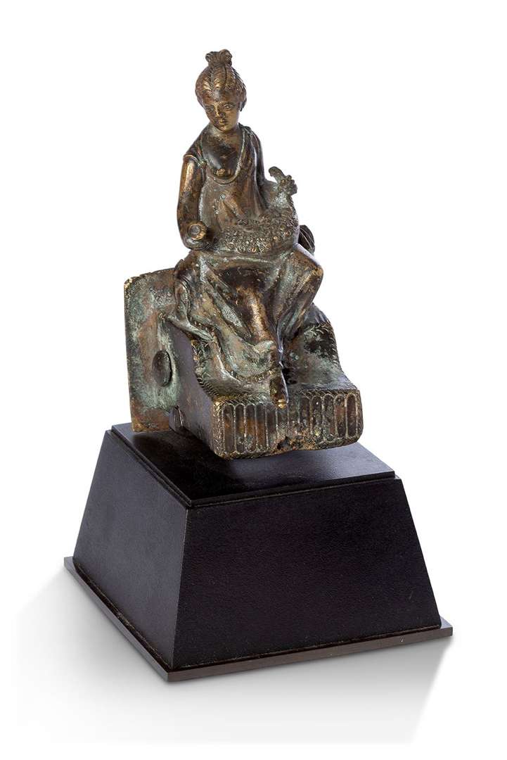 Statuette représentant la déesse Flore (?) assise sur un trône.