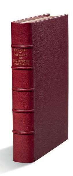 ÉDITION ORIGINALE du Discours sur l'Histoire universelle, avec en-tête, lettrine et cul-de-lampe gravés par Jolain. Très bel exemplaire, grand de marges, quelques très légères rousseurs, petite galerie de vers bien comblée en marge de 20 feuillets.