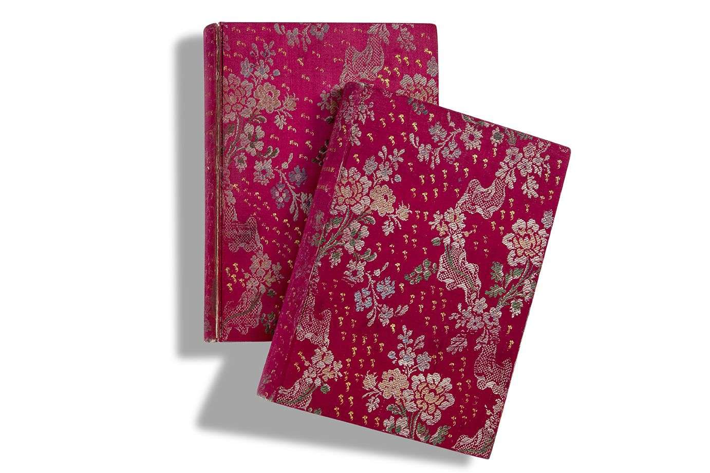 100 L.A.S. (quelques-unes non signées), 1848-1870, à Francisque MICHEL | environ 230 pages de formats divers, enveloppes avec timbres | le tout monté sur des feuilles de papier Japon et relié en 2 volumes in-4, soie rouge brochée ornée de motifs floraux (une charnière usée).