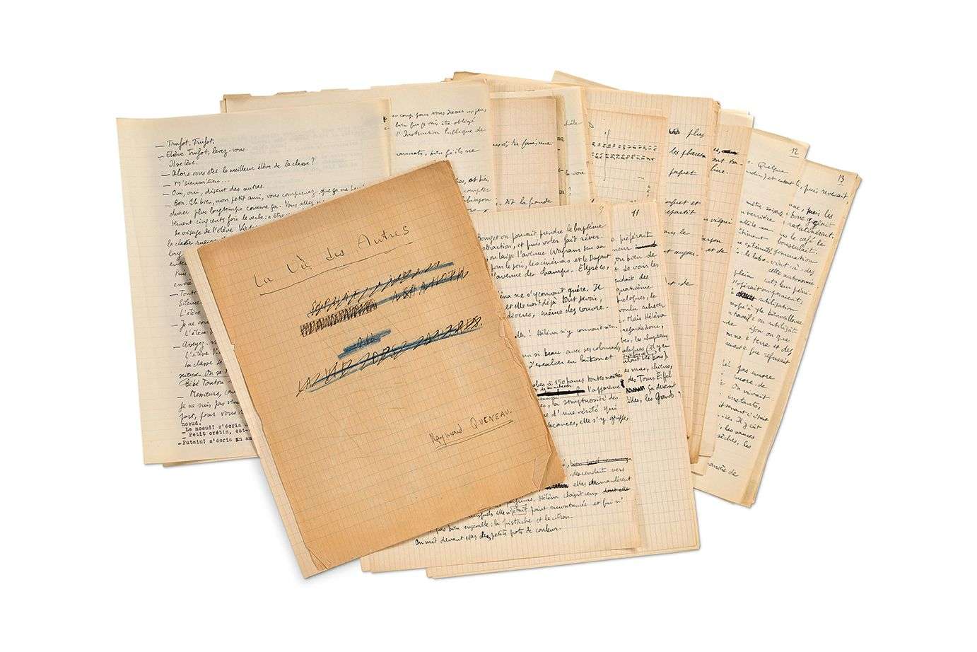 Important ensemble des notes préparatoires et du manuscrit de premier jet, seul connu, du cinquième roman de Queneau, Les Enfants du limon.