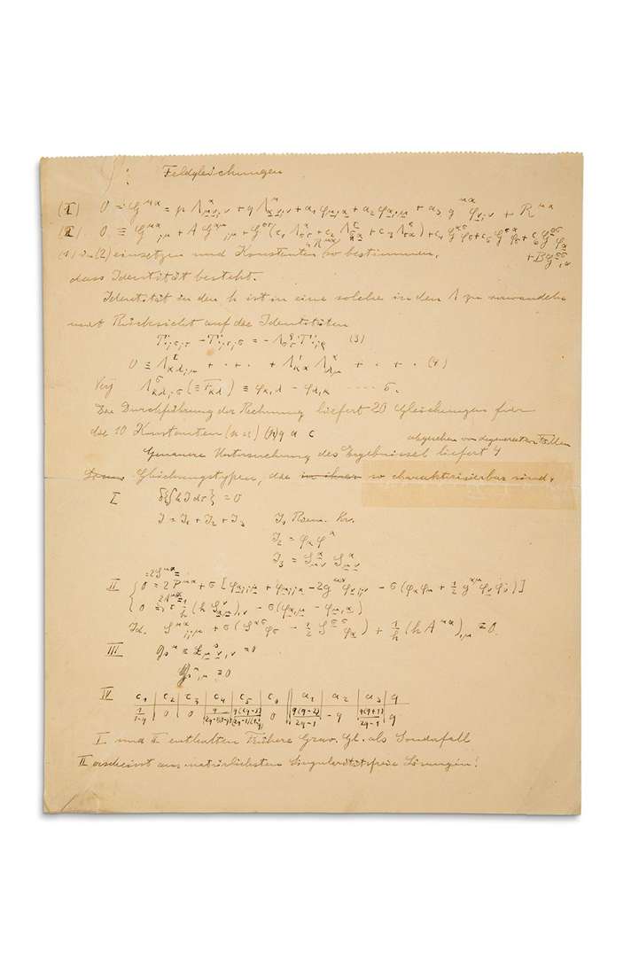MANUSCRIT autographe, Feldgleichungen | 1 page in-4 montée sur carte (fente réparée au scotch).
