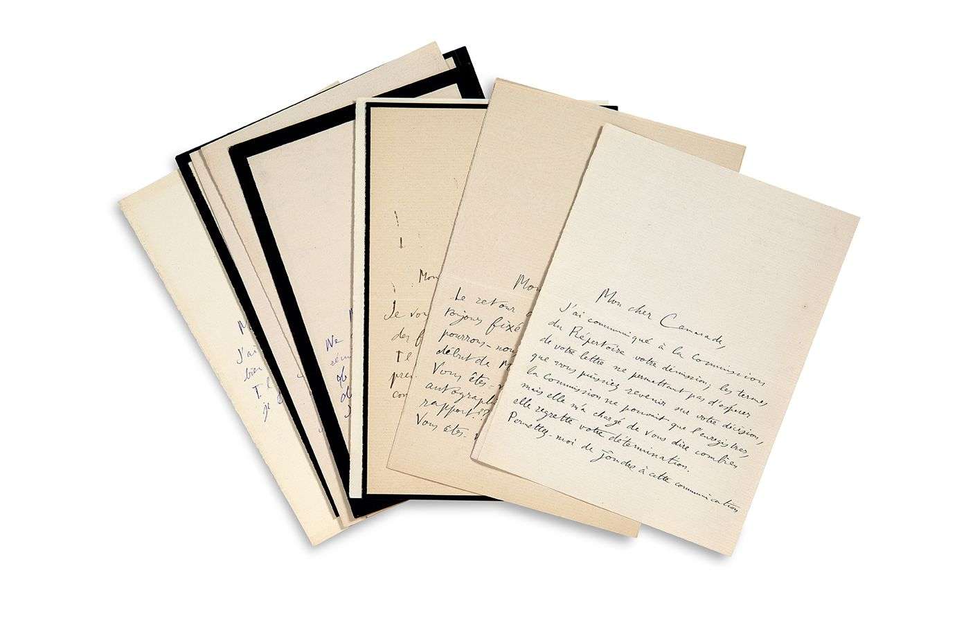 12 L.A.S. « Poincaré », à un « cher Camarade » | 16 pages in-8 (5 sur papier deuil).