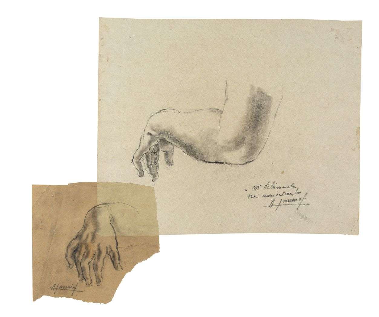 Fusain sur papier et calque. L'une signée et dédicacée en bas à droite. L'autre signée en bas à gauche